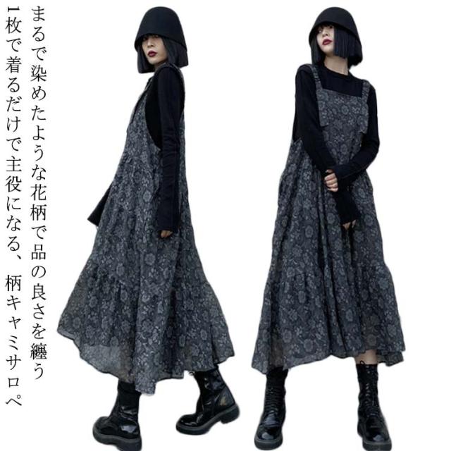 サロペ サロペット 花柄 花柄キャミサロペット レディース 花柄 送料無料 サロペット レディース サロペット オールインワン サロペット 体型カバー スカート ロング 花柄キャミサロペット ワンピース マキシ丈 オールインワン