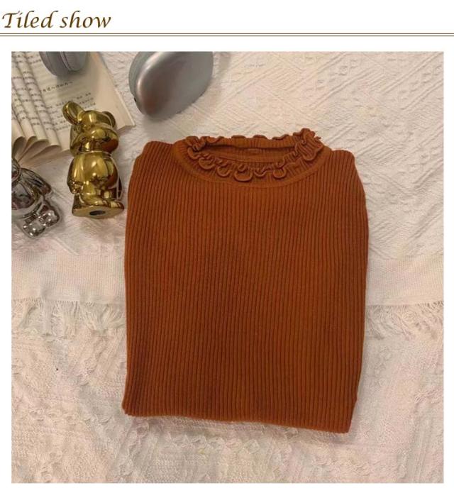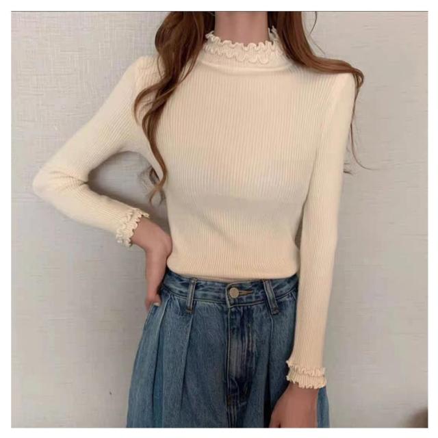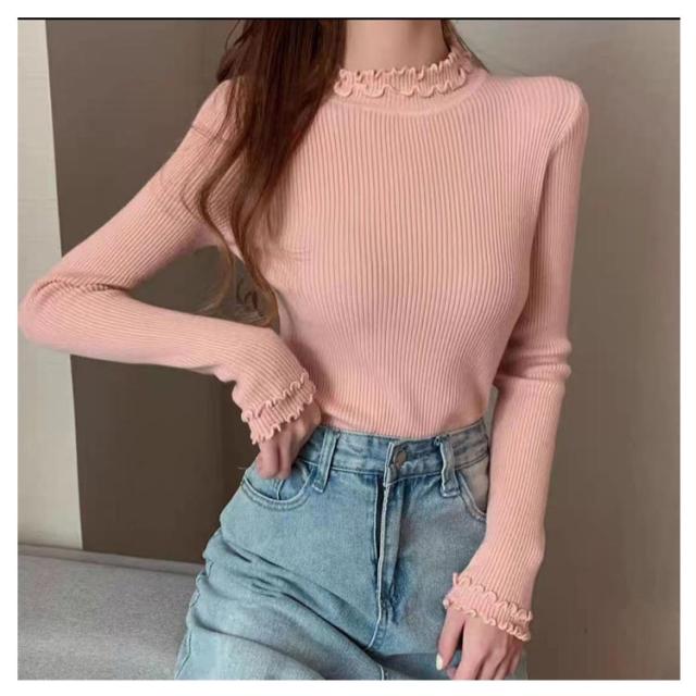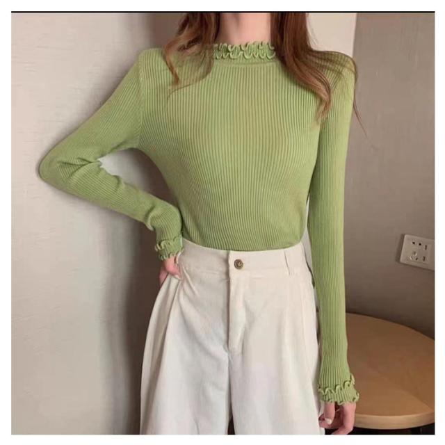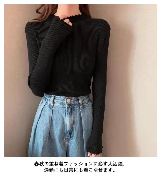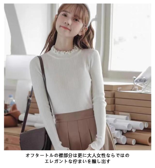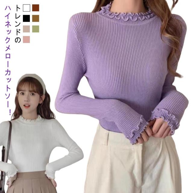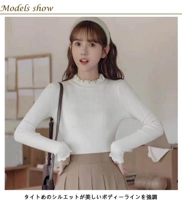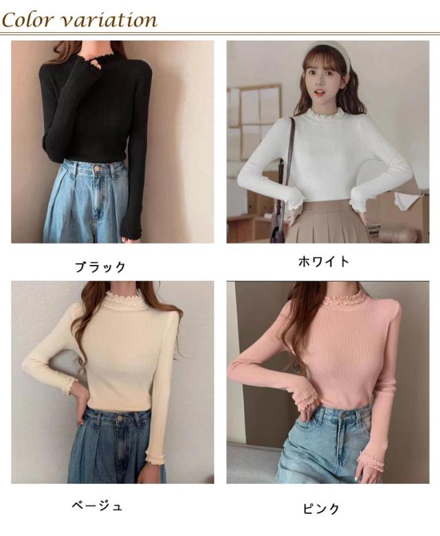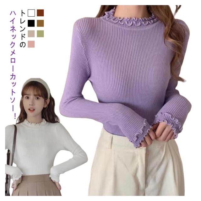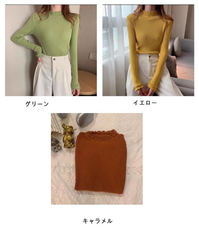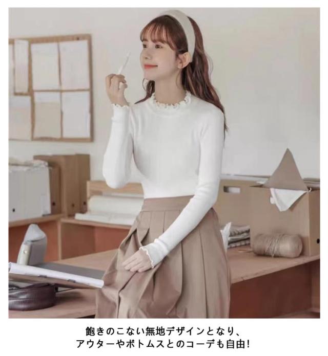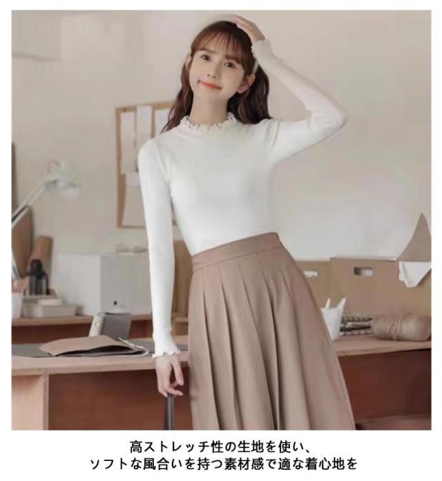 レディース 長袖 長袖tシャツ トップス フリル ハイネック レイヤード インナー 無地 ニットトップス タートルネック カットソー tシャツ 薄手 きれいめ インナーTシャツ 冬 秋 春 ストレッチ 伸縮性 シンプル 重ね着 フェミニン