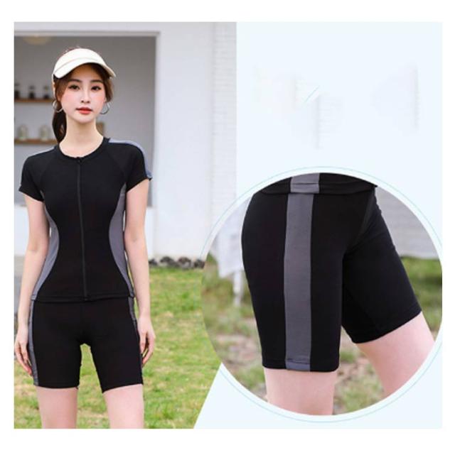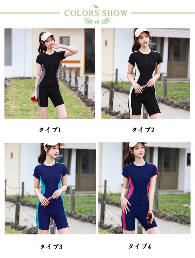 フロントジッパー 大きいサイズ 水着 レディース セパレート 半袖 水着 40代 フィットネス水着 競泳水着 ジム 体型カバー水着 めくれ防止 2点セット 半袖ラッシュガード ママ水着 30代 プール 50代 オトナ女子 かわいい 人気 ぽっちゃり セパレート 着痩せ