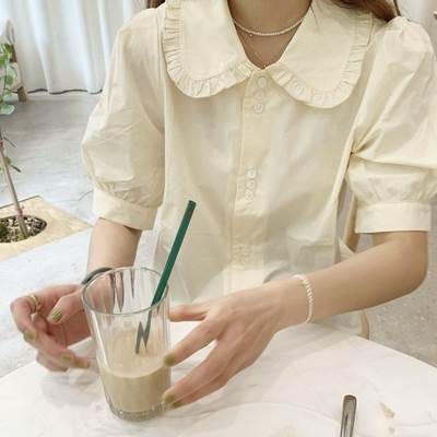 トップス ブラウス パフスリーブ フリル シャツ 襟付き 半袖 レディース きれいめ 上品 エレガント お洒落 オシャレ かわいい 大人可愛い 10代 20代 30代 40代 ОL 通勤 仕事 オフィス シンプル カジュアル 春 秋 夏 こなれ感 休日 お出かけ 女子会 韓国 トレンド 流行 Iライン ストレート 柔らか 着心地 無地 ホワイト 白 ベージュ 薄手 抜け感 知的 美人 清潔感 清楚 着回し S М L XL 前開き ボタン 体型カバー 着痩せ ボリューム 袖 量産型 ロリータ 姫系