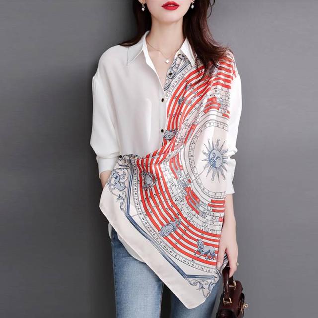 トップス レディース シャツ ブラウス 七分袖 柄 襟付き 個性的 レトロ 春 夏 秋 大人 かわいい 上品 きれいめ お洒落 シンプル カジュアル ナチュラル フェミニン