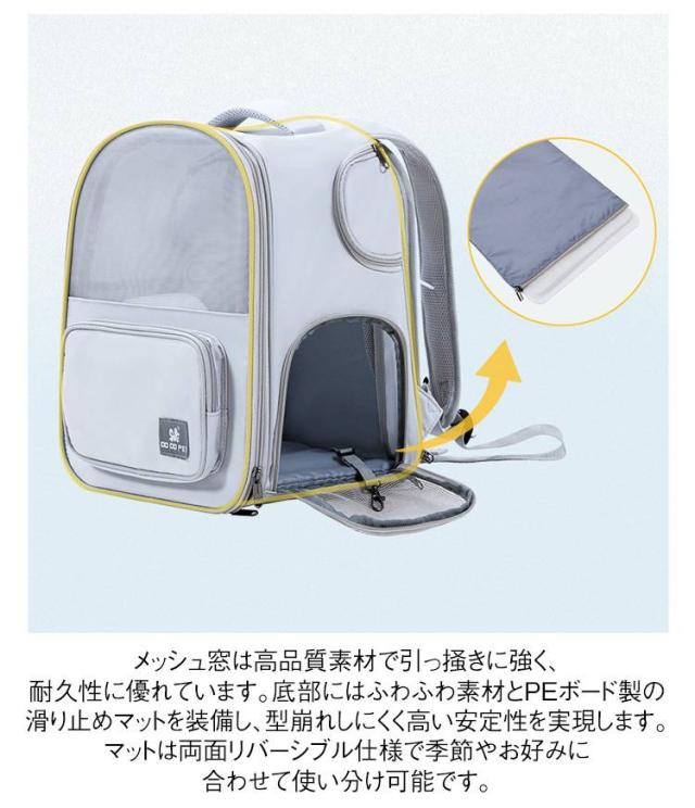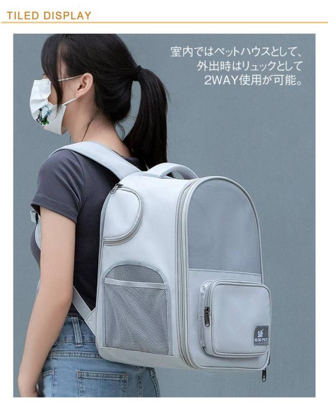 | 背面のファスナーを開けると広々メッシュハウスに拡張可能! 室内ではペットハウスとして、外出時はリュックとして2WAY使用が可能。 側面の開放窓で2カ所の出入り口を確保し、猫や小型犬が自由に動き回れる快適空間を実現。 防災避難時や旅行にも最適な多機能デザインです。 メッシュ構造で通気性◎通気メッシュ生地で長時間背負っても蒸れず、春夏秋冬快適にご利用いただけます。 全てのファスナーはロック式ダブルファスナーを採用しており、ヤンチャなペットも安心です。 メッシュ窓は高品質素材で引っ掻きに強く、耐久性に優れています。底部にはふわふわ素材とPEボード製の滑り止めマットを装備し、型崩れしにくく高い安定性を実現します。マットは両面リバーシブル仕様で季節やお好みに合わせて使い分け可能です。 胸元&腰の2段チェストベルトで重量分散!肩への負担を軽減し、長時間のドライブや散歩でも疲れにくい人間工学デザイン。 折りたたみ式で収納時はスリムに収まり、クローゼットの隙間にもOK。シートベルト固定可能で車内キャリーとしても大活躍! | |