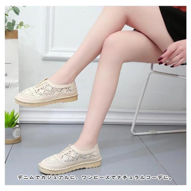 カジュアルシューズ 涼しげ レディース レーススリッポン 通気性 カギ編み モチーフ レディース スリッポン ソフトソール フラットシューズ 歩きやすい 疲れない 女性 靴 軽量 40代 50代