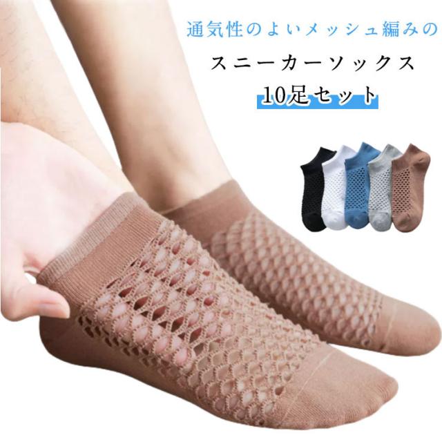 スニーカーソックス 薄手 メンズ メッシュ 夏用 靴下 ソックス 無地 通気性の良い フットカバー フットカバー くるぶしソックス スポーツ カバーソックス 10足セット 浅履き 通気性抜群 シンプル 快適 ショートソックス くつした 10足セット