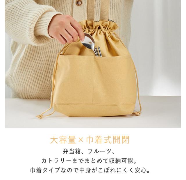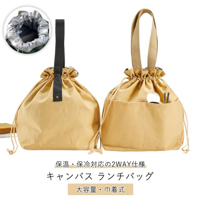 キャンバス生地 巾着 お弁当袋 大きめサイズ おしゃれ マチ広い 保冷保温 大容量 水筒 弁当袋 弁当入れ お弁当袋 ランチバッグ かわいい 通勤 通学 子供 ピクニック
