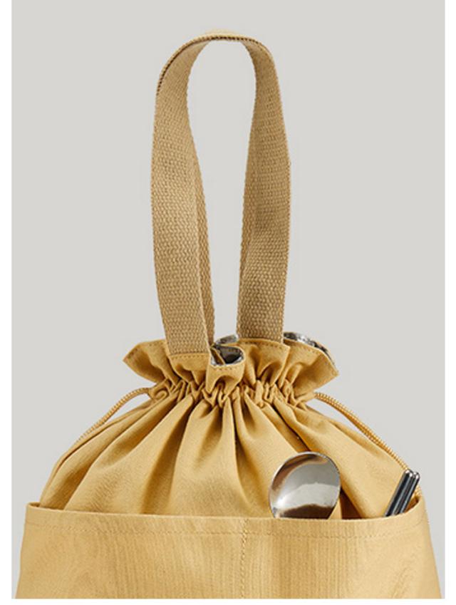 | キャンバス ランチバッグ 大容量 巾着式 保温・保冷 保温・保冷対応の2WAY仕様 外側は丈夫なキャンバス生地、内側は保温層付き。 大容量×巾着式開閉 弁当箱、フルーツ、カトラリーまでまとめて収納可能。巾着タイプなので中身がこぼれにくく安心。 持ちやすい加長ハンドル 幅広×長めの持ち手で、手が痛くならず快適に持ち運び可能。 お手入れ簡単 キャンバス素材で耐久性抜群。汚れはサッと拭き取れるので、デイリー使いにぴったり。 | |