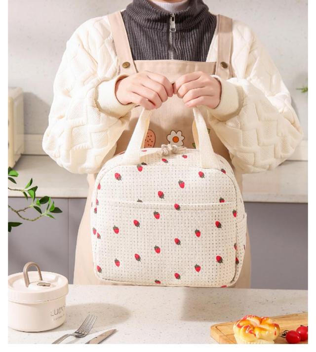 コーデュロイ 保冷 保温 弁当バッグ 軽量 ランチバッグ 大容量 手提げ 保温 ランチトート 花柄 レディース チェック柄 イチゴ柄 かわいい
