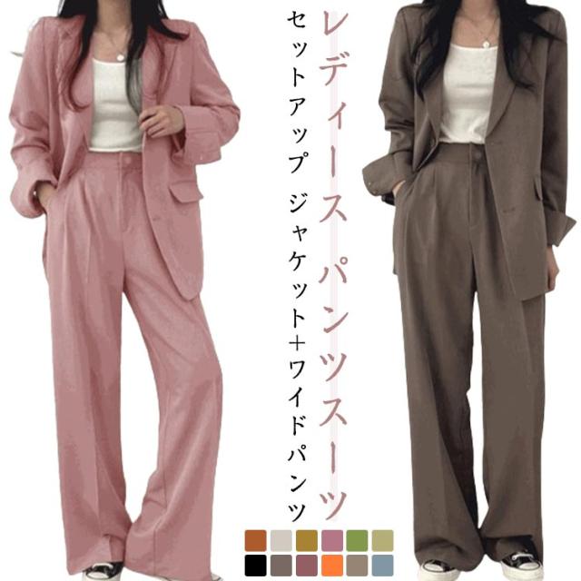 パンツスーツ 秋 テーラードジャケット 脚長 パンツスーツ ワイドパンツ レディース セットアップ おしゃれ 大きいサイズ オフィスカジュアル 入学式 卒業式 通勤 通学