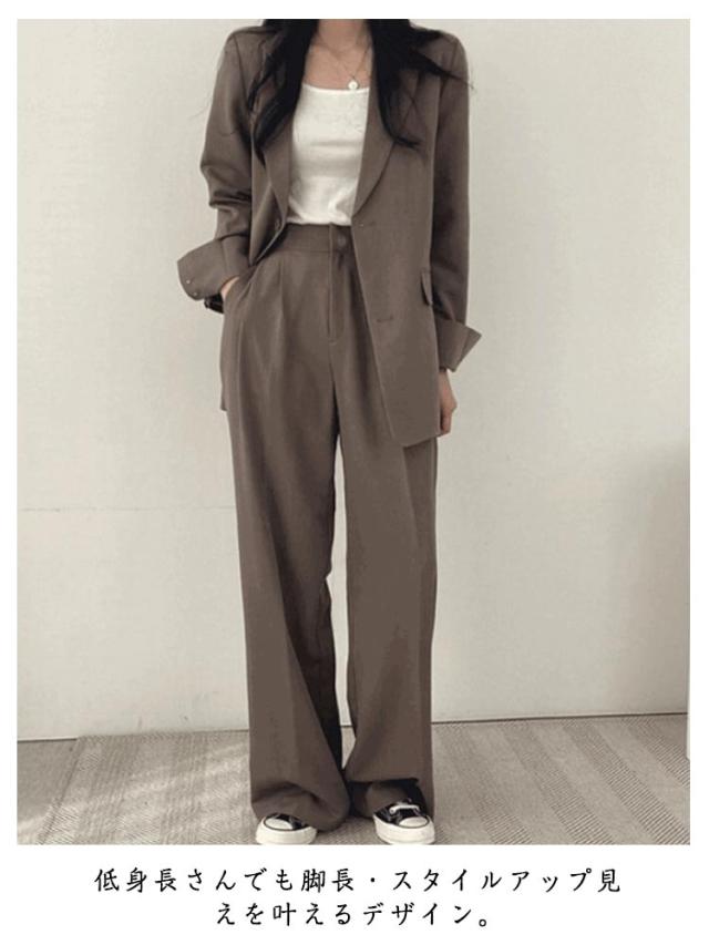 | レディース パンツスーツ セットアップ ジャケット+ワイドパンツ 低身長さんでも脚長・スタイルアップ見えを叶えるデザイン。 韓国風トレンド感のあるテーラードジャケット 単排2ボタン仕様で、きちんと感と抜け感を両立。 オフィスからカジュアルまで幅広く活躍 通勤・通学・女子会・お出かけなど、様々なシーンで着回し可能。 | |