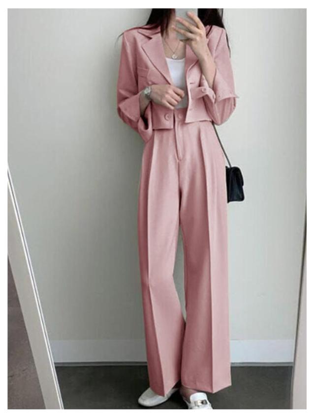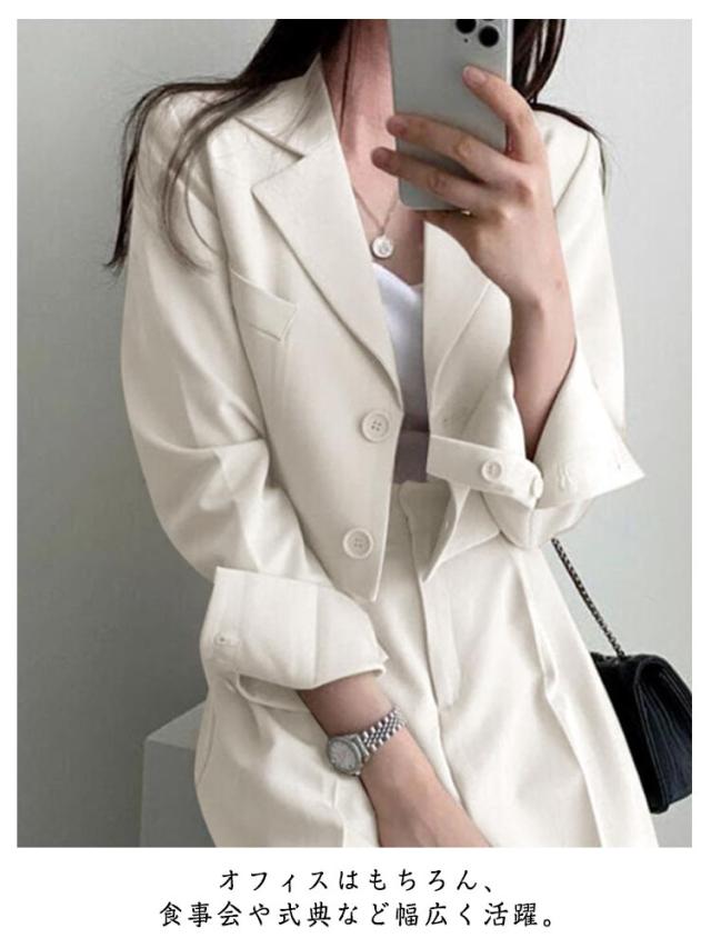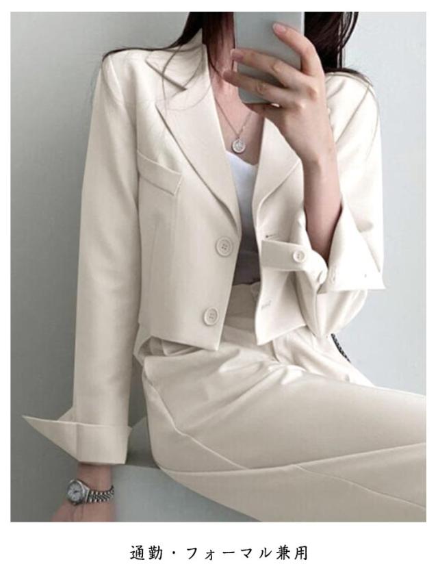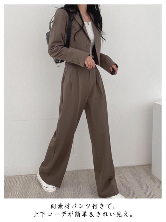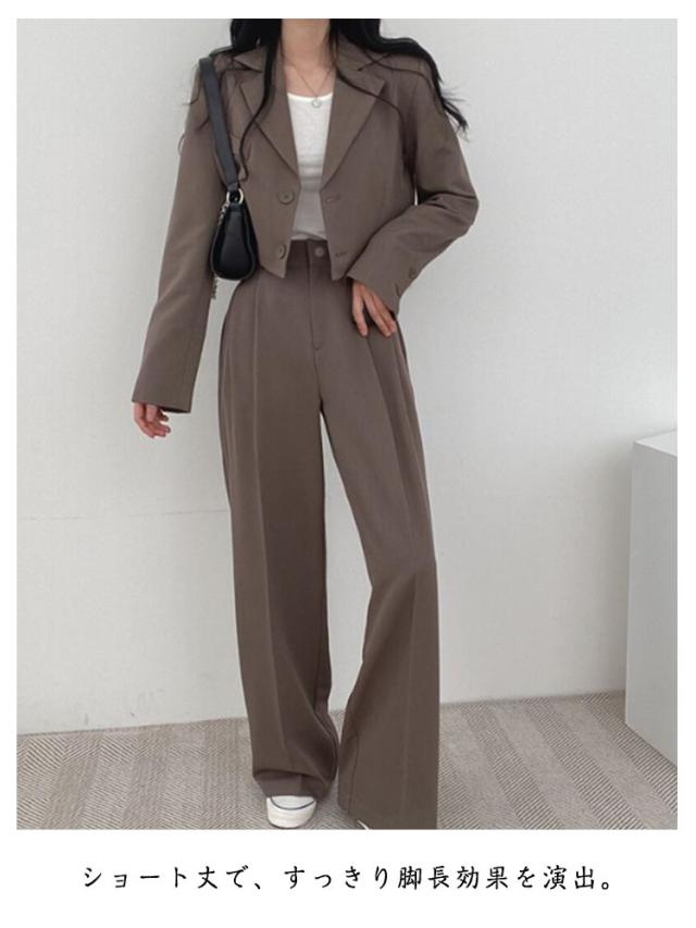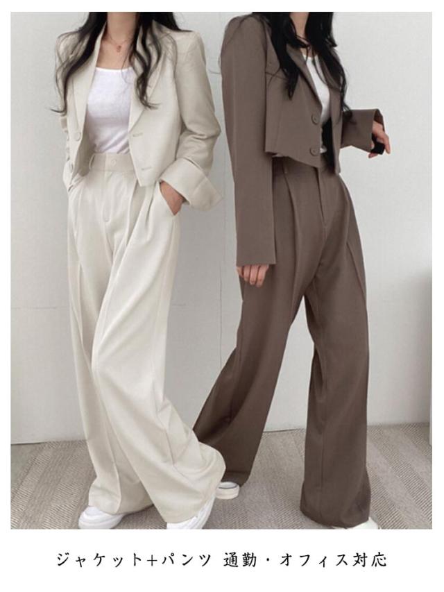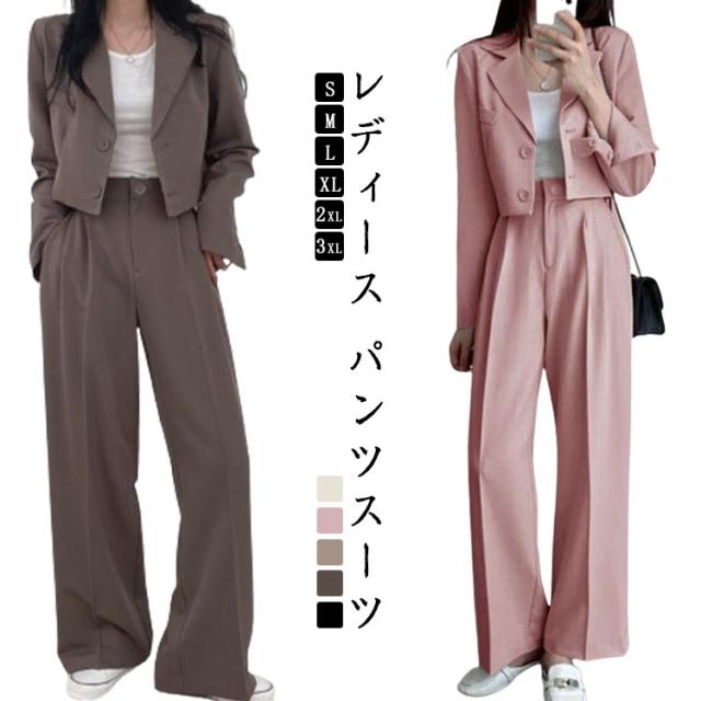 春秋 セットアップ セットアップ レディース ワイドパンツ ショート丈 テーラードジャケット パンツスーツ ジャケット シンプル 大きいサイズ フォーマル オフィス 通勤 通学 入学式