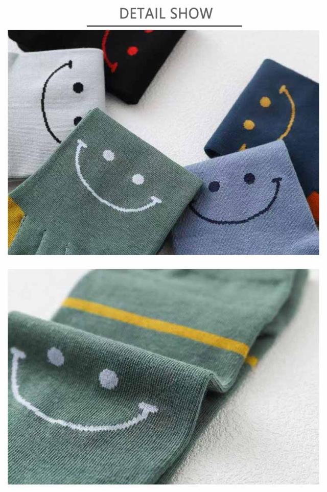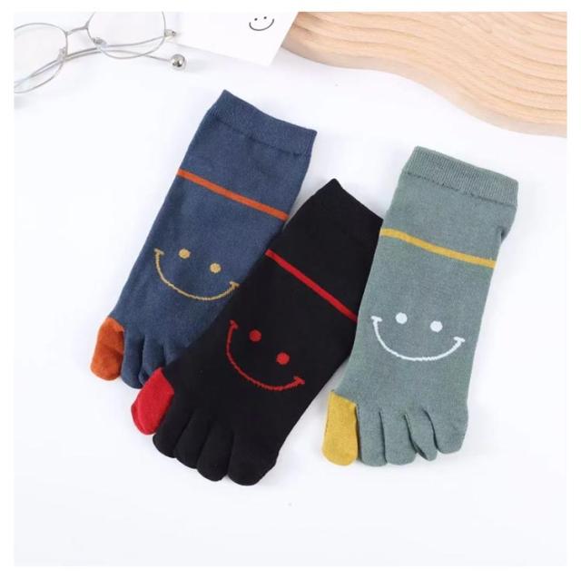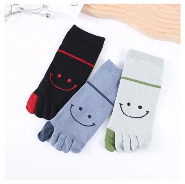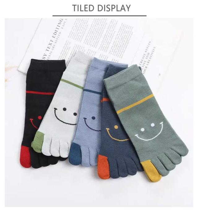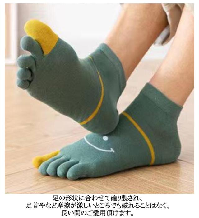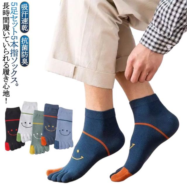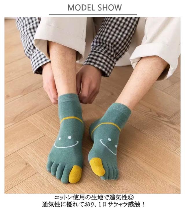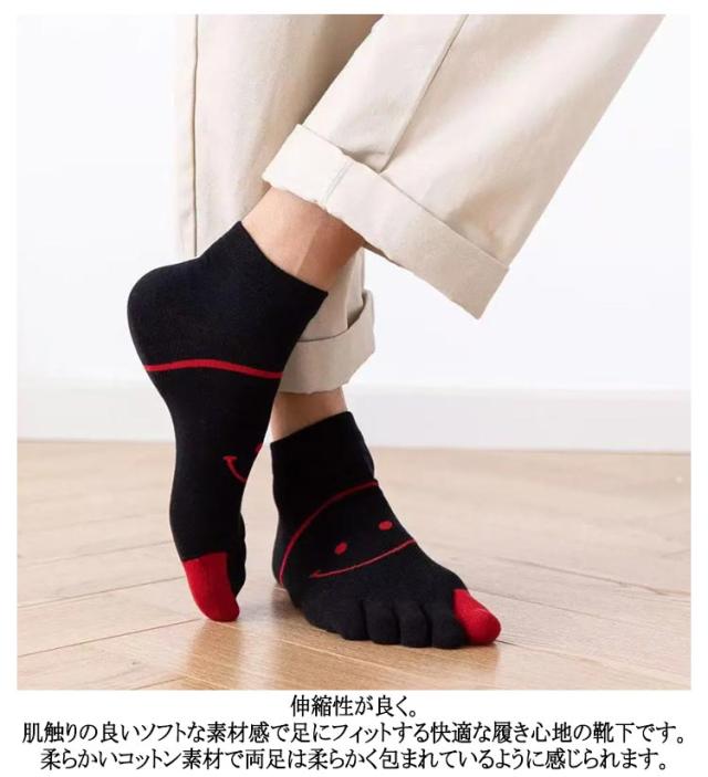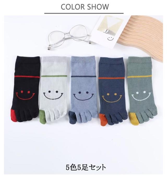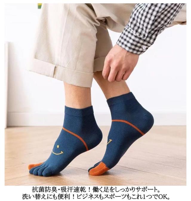 蒸れない スマイル柄入り ビジネス ソックス 通学 吸汗速乾 靴下 メンズ 【5足組】5本指ソックス 笑顔 スポーツ ソックス 可愛い 無地 五本指靴下 おしゃれ 通気性 【5足組】5本指ソックス 5足セット 綿混 通勤 カジュアル あったか 秋 冬 オールシーズン 実用的