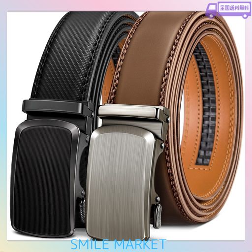 [BULLIANT] ベルト メンズ2本セット, ベルトスーツビジネス紳士用大きいサイズ 穴なしベルト,オートロック無段階調整ベルト35MM,ギフトボックス付(黒/茶色,全長125CM/ウエストサイズ91-107CM調整…
