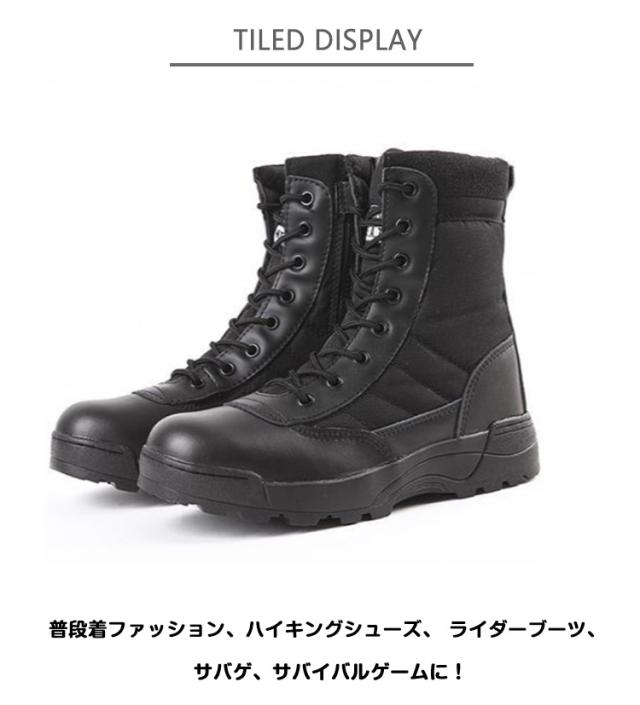 | サイドジッパー仕様、タクティカルブーツ ライダーブーツ 作業靴 シューズ サイドZIP により靴紐を外す必要がなくストレスなく脱着可能。 靴底は、ゴムで 防滑フィット! サイドジッパー仕様なので、脱ぎ履き楽々。 シンプルなデザインにしっかりと作られた厚めのソールで カーゴパンツ との相性は抜群。素材もしっかりしており、長年愛用頂ける靴に仕上がりました。 普段着ファッション、ハイキングシューズ、 ライダーブーツ、 サバゲ、サバイバルゲームに! | |