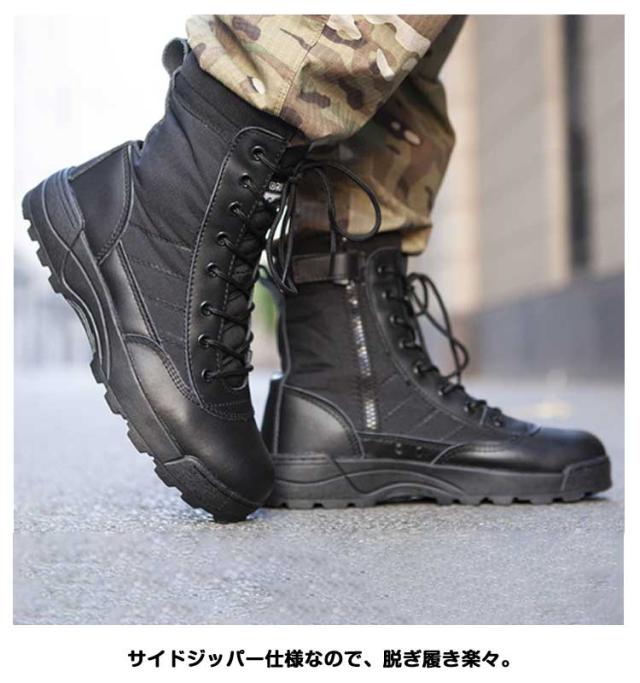 サイドZIPブーツ 作業靴 ミリタリーブーツ コンバットブーツ サバゲーブーツ ミリタリーブーツ ワークブーツ シューズ サイドジッパー メンズ ジャングルブーツ アメカジ系 ストリート系 ライダーブーツ トレッキングブーツ 24.5-27cm