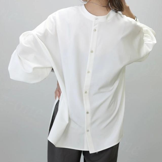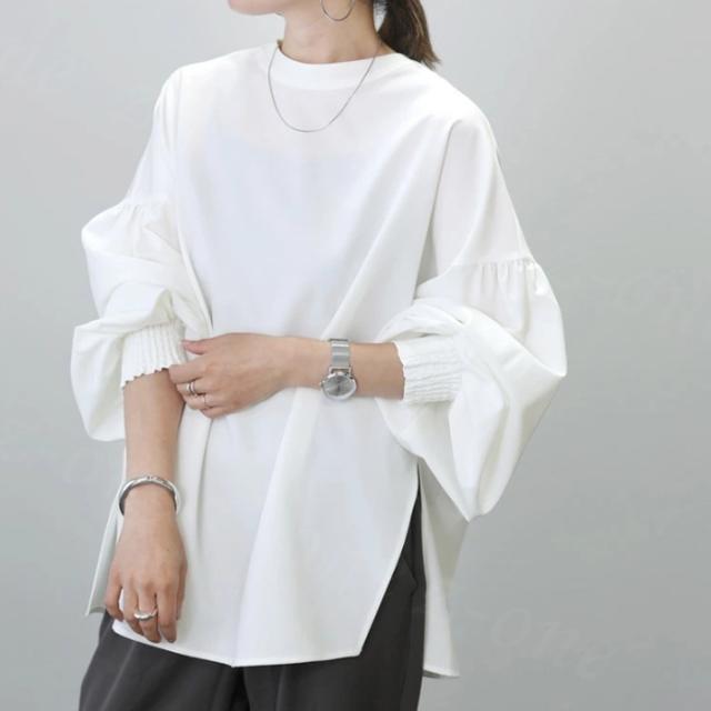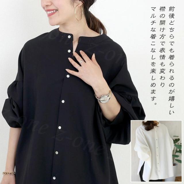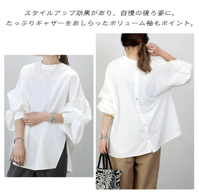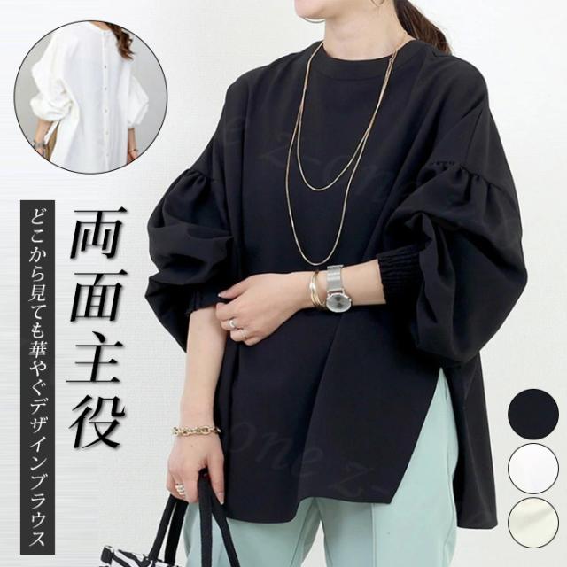 【2,550円!クーポン利用で】ブラウス シャツ トップス レディース 両面主役 長袖 襟付き 新作 シャツブラウス 可愛い ボリューム袖 サイドスリット tシャツ 春秋冬 冷房対策 おしゃれ 仕事 通勤 通学 オフィス シンプル 韓国風 人気 洗える ゆったり ホワイトデー 卒業式
