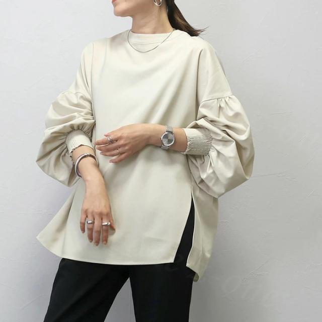 たっぷりギャザーをあしらったボリューム袖もポイント。