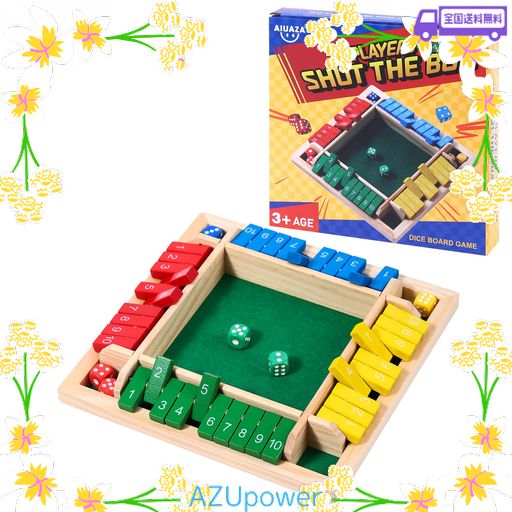 AIUAZA サイコロゲーム 箱を閉じる 木製ボードゲーム 4面 家族数学ゲーム 2~4人用 教育学習 インタラクティブ クラシック 卓上版ゲーム 教室、パーティー、パブ用