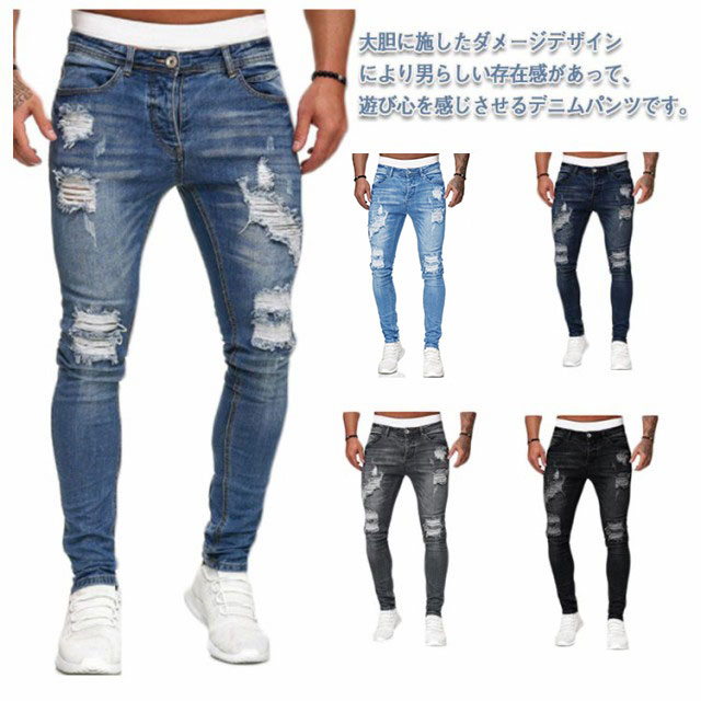 スキニーパンツ メンズ デニムパンツ ダメージデニム ダメージジーンズ スキニージーンズメンズファッション ズボン パンツ
