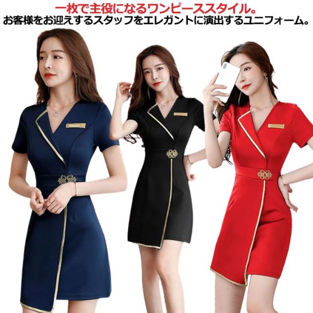 エステ ワンピース 配色パイピング ユニフォーム エステ 半袖 大きいサイズ 制服 クリニック 美容 サロン