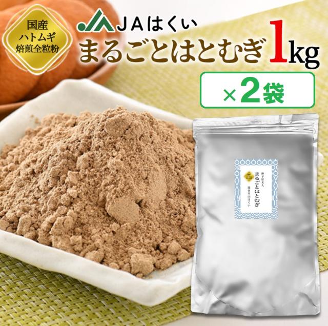 JAはくい まるごとはとむぎ 1kg ×2袋セット ハトムギ 焙煎全粒粉 粉末 石川県産 国産100% はと麦