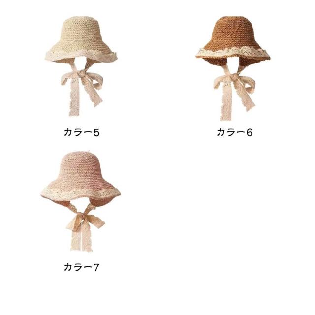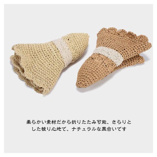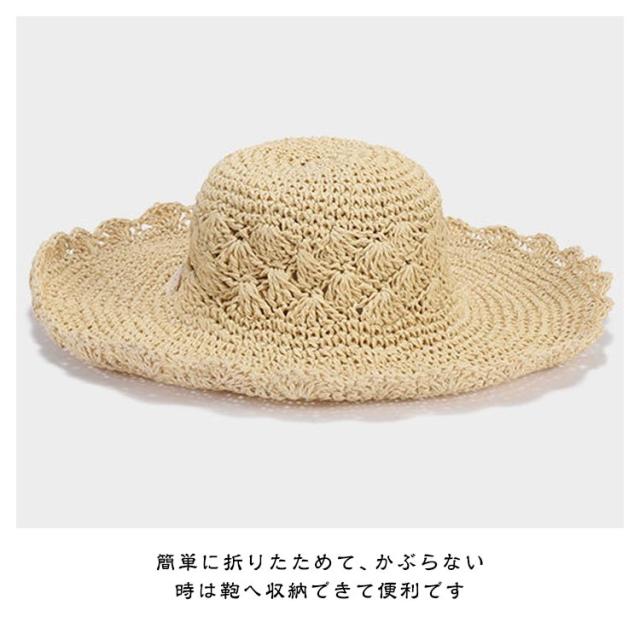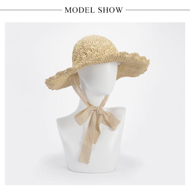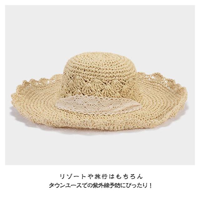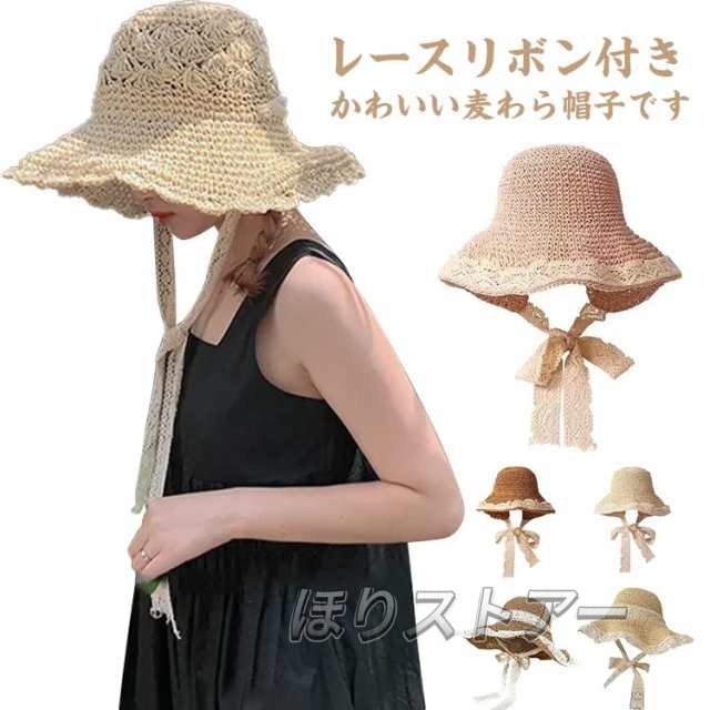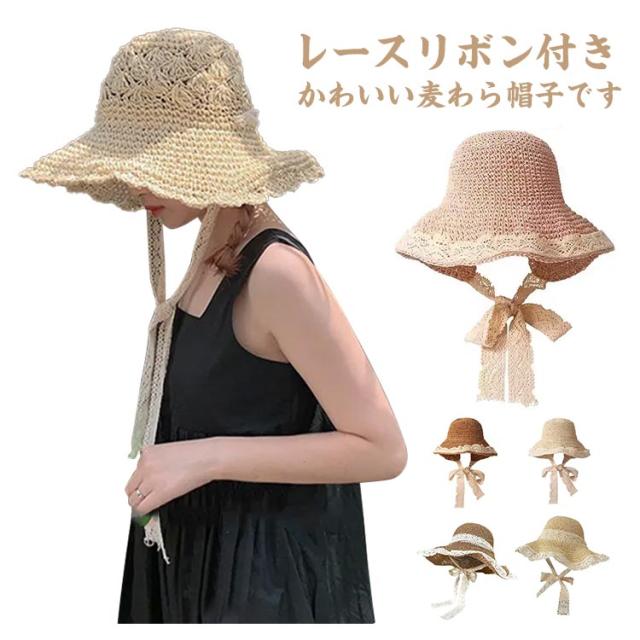 レースリボンがお洒落麦わら帽子 帽子 レディース UVカット ストローハット 折りたたみ 麦わら帽 つば広 ハット 大きいサイズ 帽子 UVハット 夏 小顔効果 日よけ 30代 40代 50代 60代
