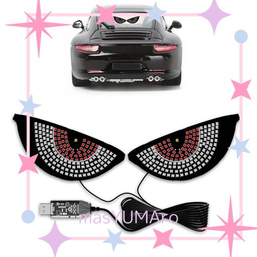 【USB接続で簡単設置】この車用 LED アイ デビルアイライトは、取り付けが非常に簡単です。USB接続で電源を供給するため、特別な配線や工具は必要ありません。車の窓用に最適なサイズで、粘着テープ付きどこにでも簡単に設置できます。