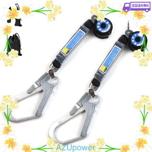ULMIOR 新規格適合巻き取り器付き 2本 兼用ランヤード 巻取り式 フルハーネス型 ランヤード ハーネス用ダブルランヤード ツインランヤード 胴ベルト用 使用可能な重量 100KG [説明書+収納袋]
