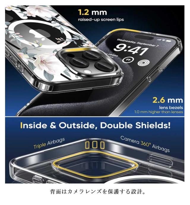 | 半透明でマットな背面クリアケース 衝撃と傷に強いセミハードポリカーボネートを使用。 サイドは優しい手触りで着脱しやすいソフトTPU素材を採用。 背面はカメラレンズを保護する設計。 ワイヤレス充電に対応。 | |