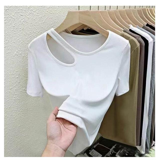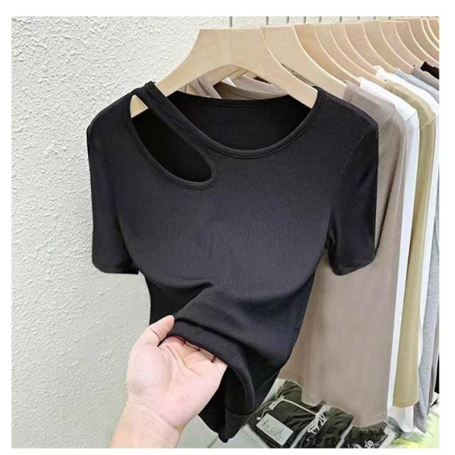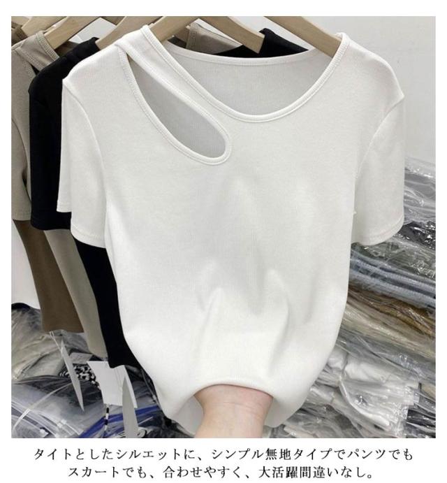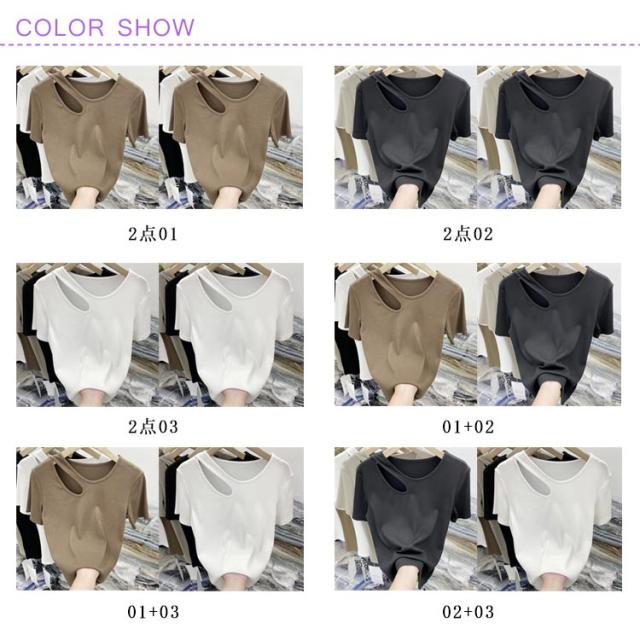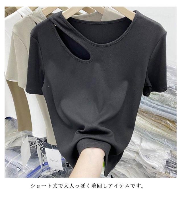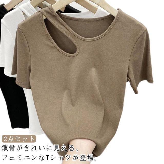 鎖骨がきれいに見える!半袖Tシャツ レディース 接触冷感 半袖 着?せ ショート Tシャツ 2点セット フェミニン 露出 インナー 春夏 S 鎖骨がきれいに見える!半袖Tシャツ 肩開き M L XL 2XL 3XL