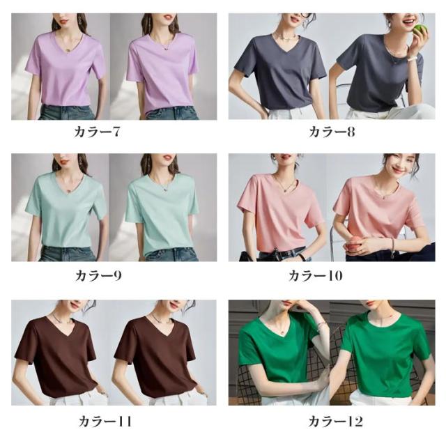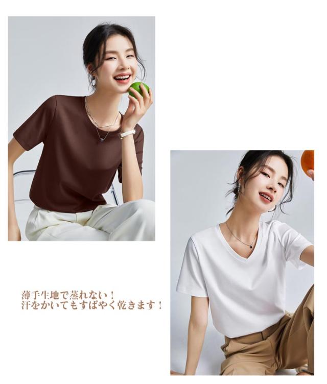 半袖 2枚セット ラウンドネック 半袖Tシャツ カットソー 接触冷感 涼感tシャツ ひんやり レディース 冷感Tシャツ 春夏 同じ色Vネック+ラウンドネック!Tシャツ 涼しい Vネック ゴルフウェア カジュアル 大きいサイズ S 同じ色Vネック+ラウンドネック!Tシャツ