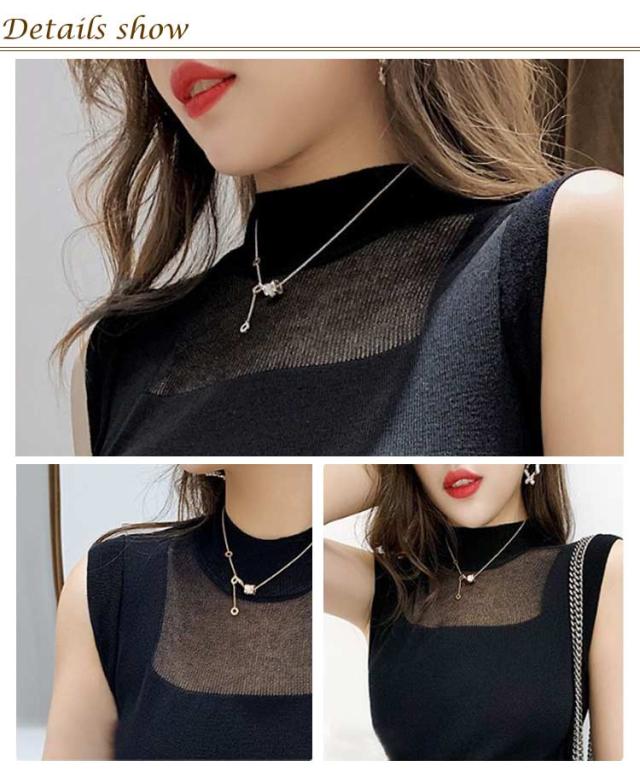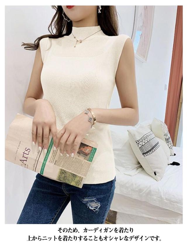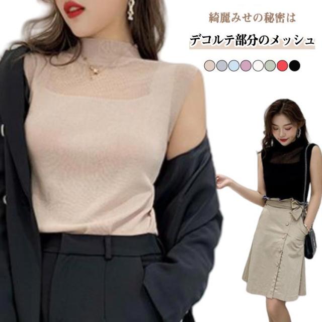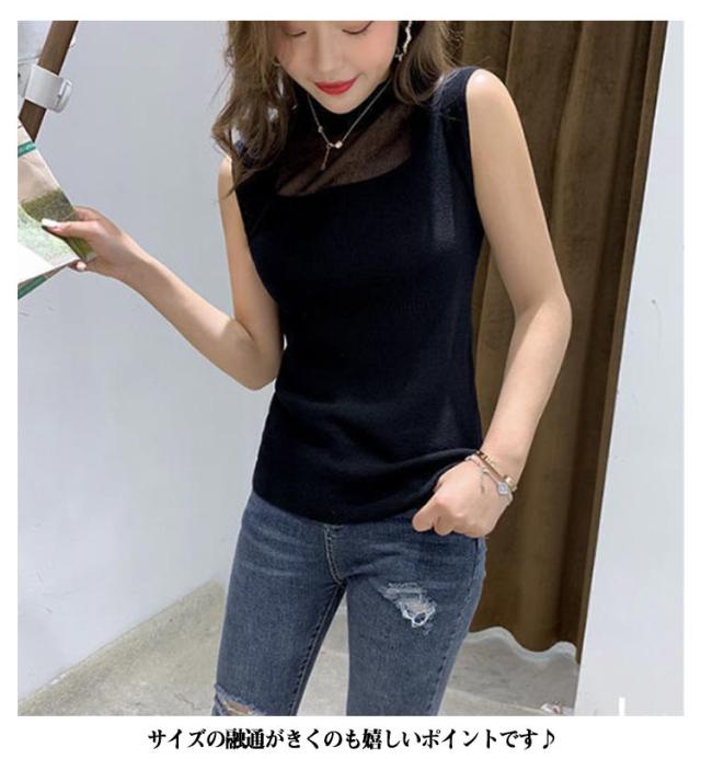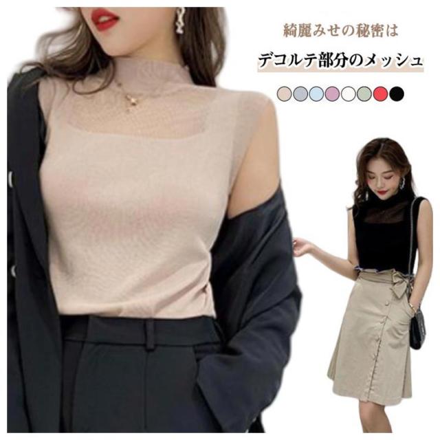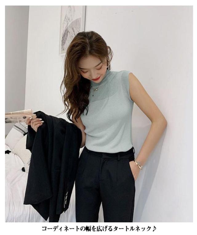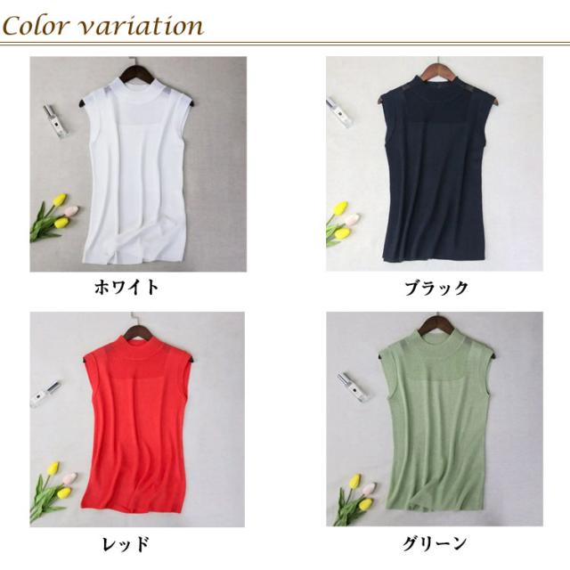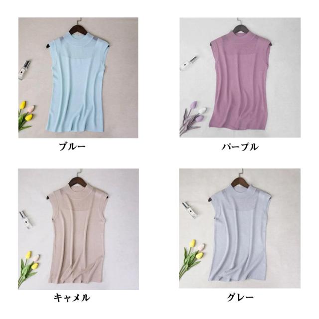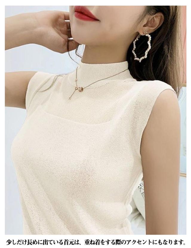 ニットトップス シアー レディース インナー トップス タートルネック タンクトップ レイヤード 無地 ハイネック サマーニット 薄手 カットソー トップス ニットトップス 春夏 袖なし 重ね着 夏トップス 透かし編み 透け感