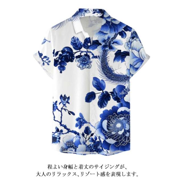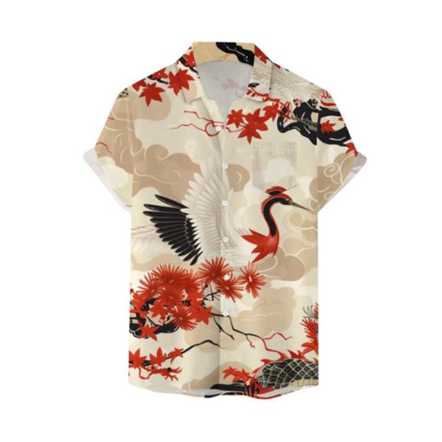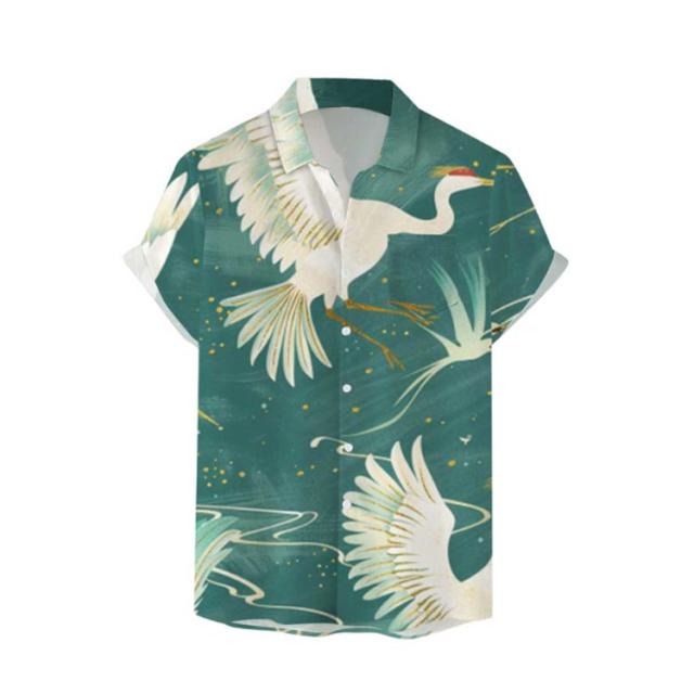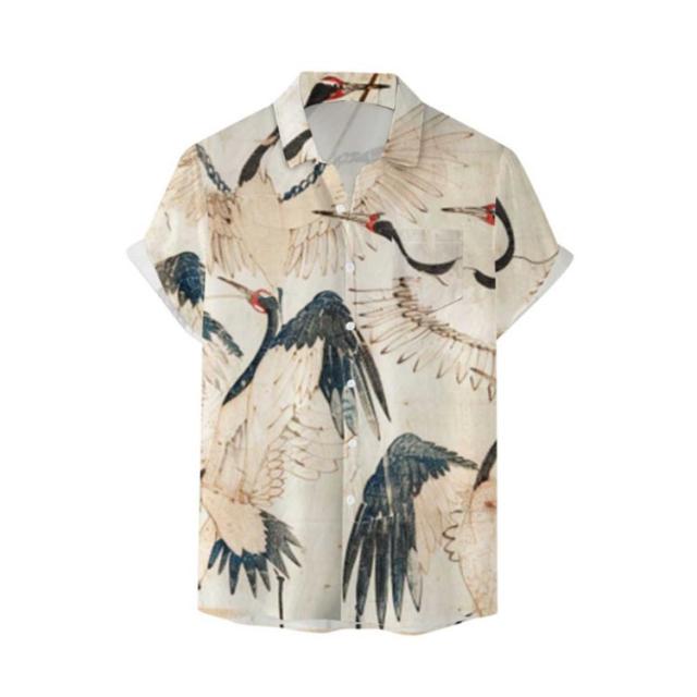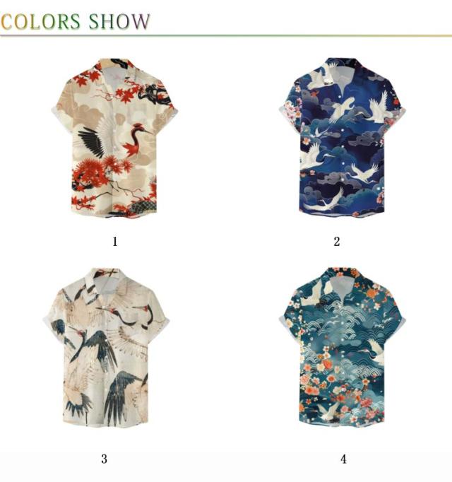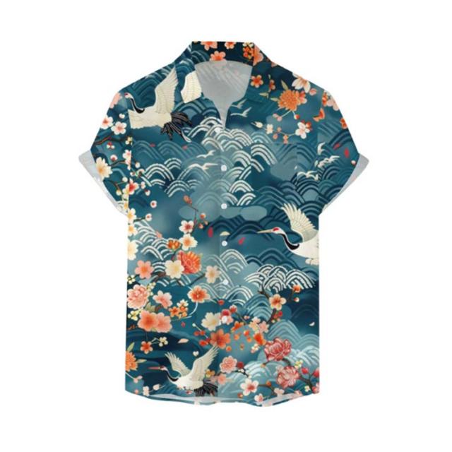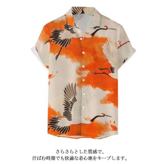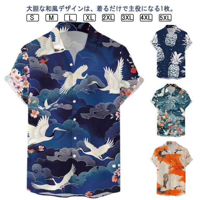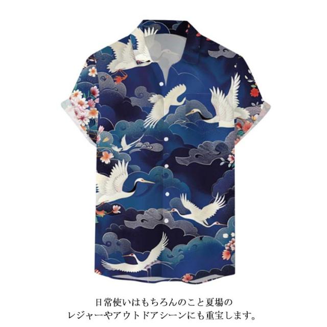 メンズ 大きいサイズ 鶴柄 夏 リゾート レトロ ストリート 総柄シャツ カジュアルシャツ レトロ 薄手 総柄 波柄 シャツ アロハシャツ 男性 柄シャツ 和柄 半袖 和風 半袖シャツ カジュアル 夏服 ビーチ アロハシャツ 川 海辺 旅行 お祭り 花火大会 30代 40代