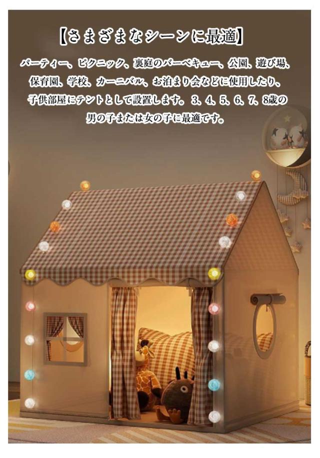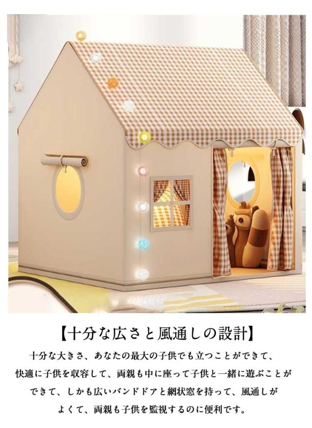 | キッズテント。 【秘密基地 子供】誰もが自分の小さなスペースを必要としています。子供たちに遊んだり寝たりするための秘密基地を与えてください。子供たちは屋内子供用テントにおやつ、おもちゃ、枕、毛布を入れることができます。 【十分な広さと風通しの設計】十分な大きさ、あなたの最大の子供でも立つことができて、快適に子供を収容して、両親も中に座って子供と一緒に遊ぶことができて、しかも広いバンドドアと網状窓を持って、風通しがよくて、両親も子供を監視するのに便利です。 【設置が簡単】テントのセットアッププロセスはシンプルかつ迅速で、面倒な工具や複雑な手順は必要ありません。金属ブラケットは頑丈で耐久性があり、設置がより便利です。 【通気性が良くてムレにくい】通気性の良い素材でお子様も快適に過ごせます,いつでも涼しく、優れた通気性と空気の対流で、お子様は蒸れずに楽しく遊べます,テントは高品質の生地で作られており、安心感があります,頑丈なテントポールは耐久性と安全性を保証します。 【さまざまなシーンに最適】パーティー、ピクニック、裏庭のバーベキュー、公園、遊び場、保育園、学校、カーニバル、お泊まり会などに使用したり、子供部屋にテントとして設置します。 3、4、5、6、7、8歳の男の子または女の子に最適です。 | |