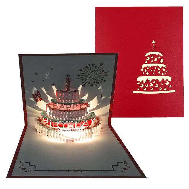 ◆商品名:3Dバースデーカード、ポップアップバースデーカード、3層のケーキが付いたグリーティングカードバースデーカード、折りたたまれたハッピ