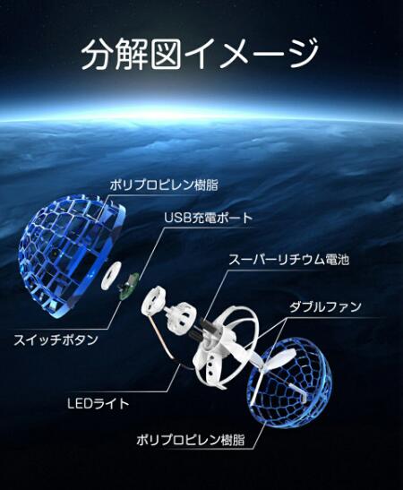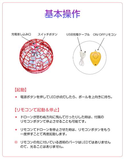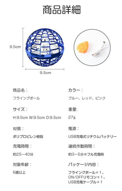 パッケージ:フライングボール*1、ON/OFFリモコン*1、USB充電ケーブル*1
