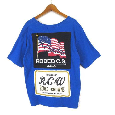【中古】ロデオクラウンズワイドボウル RCWB Tシャツ ロゴ メニー タグ ポケットT カットソー 半袖 F 青 ブルー