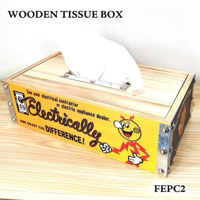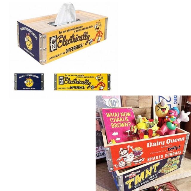 アメリカの電力会社のマスコット・レディキロワットがデザインされた木製のティッシュボックスです!