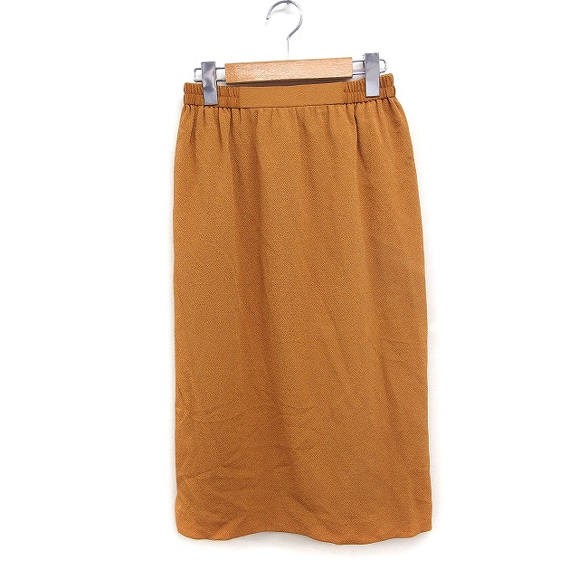 【中古】シセンドウ 詩仙堂 HITOSHI TAMURA ちりめん織り タイトスカート ひざ下丈 ミディ丈 スリット 無地 キャメル
