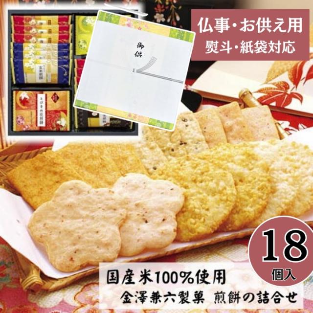 お供え せんべい 煎餅 個包装 【18枚】お菓子 米菓 えびせん 贈答 国産米当日出荷 当日SG 送料無料 個包装 小分け せんべい緑 あす楽 おかき 和菓子 金澤兼六製菓 詰合わせ セット 御供 法事 仏事 四十九日 一周忌 仏壇 供物