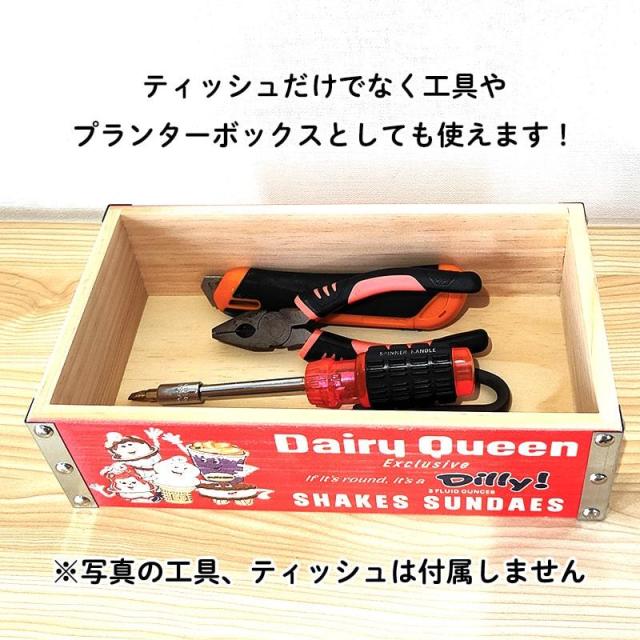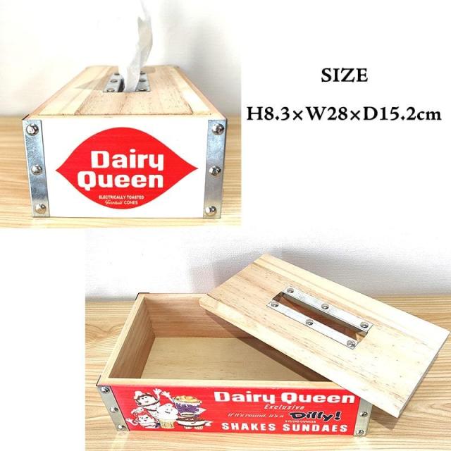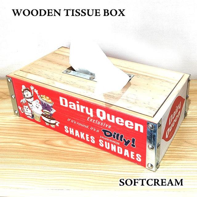 ティッシュボックス 木製 デイリー・クイーン ソフトクリーム かわいい アメリカン 雑貨 インテリア 収納 工具入れ 小物入れ ガレージ 箱 Dairy Queen おしゃれ カフェ レストラン お店
