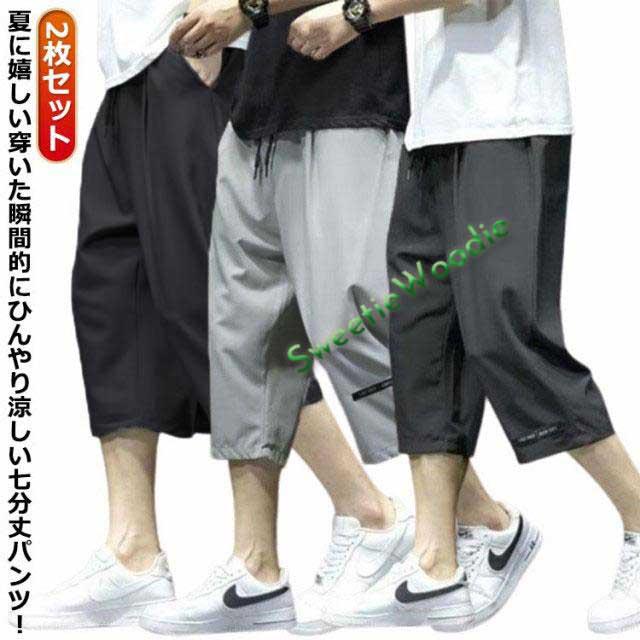 2枚セット!7分丈 スポーツ クロップドパンツ パンツ 接触冷感 イージーパンツ 冷感 夏 ワイドパンツ 無地 涼しい カジュアルパンツ メンズ ウ