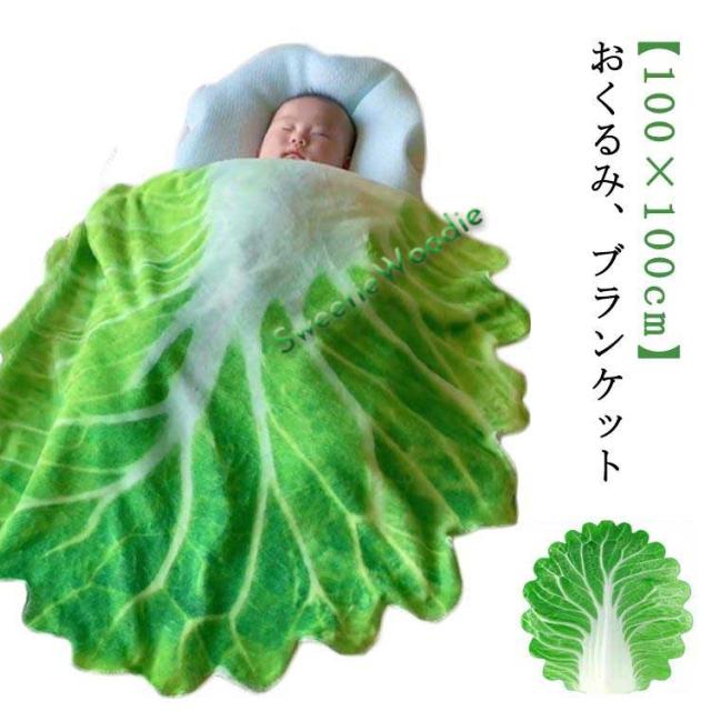 おもしろ ブランケット おくるみ 寝かしつけ 100×100cm 白菜 野菜 植物 赤ちゃん 新生児 寝かしつけ 100×100cm SNS映え 出産