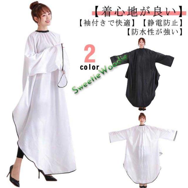 散髪マント 袖付き 染髪ケープ ヘアエプロン セルフカラー 散髪ケープ ヘアカット 静電気防止加工 防水加工 散髪マント 大人/子供用 染髪ケープ