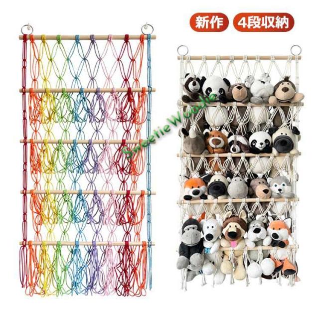 | 新作 4段収納 収納に困っているぬいぐるみをきれいに収納することができるマクラメハンモック。 壁掛けもでき、浮かせる収納もでき、様々な場所で設置できます。 ぬいぐるみ収納をしながら飾ることができるため、一石二鳥です。 タッセルをつけると、よりインテリア感の強い、おしゃれな印象に。 飾りたいぬいぐるみの大きさに合わせて、つくれるのも魅力です。 | |