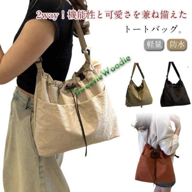 2way 大きめ 旅行 軽量 巾着開閉 a4 ナイロン トートバッグ 斜めがけ 通勤バッグ 軽い ナイロンバッグ 防水 大容量 多収納 多機能 ショル