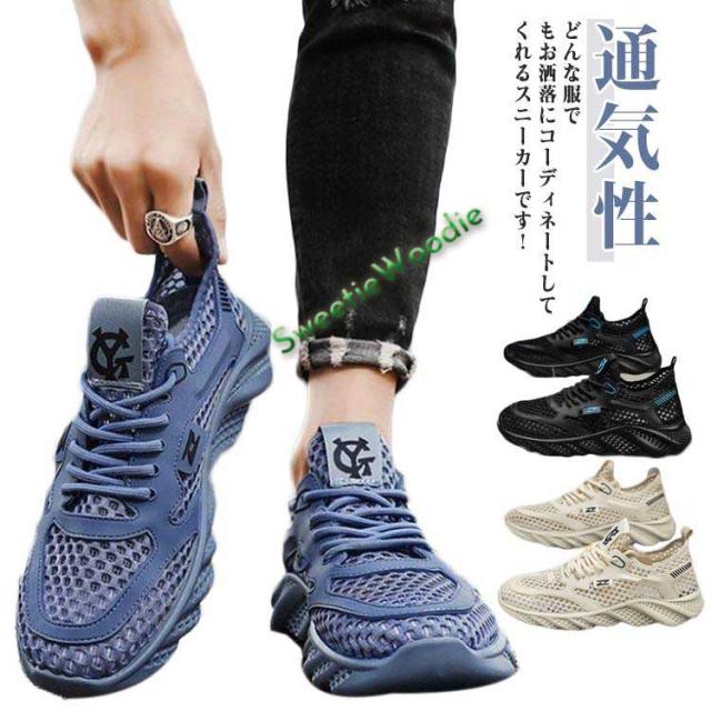 メンズ 軽量 ウォーキングシューズ メッシュシューズ 軽い ローカット サマーシューズ 涼しい ゴルフシューズ 運動靴 ランニングシューズ 厚底スニー