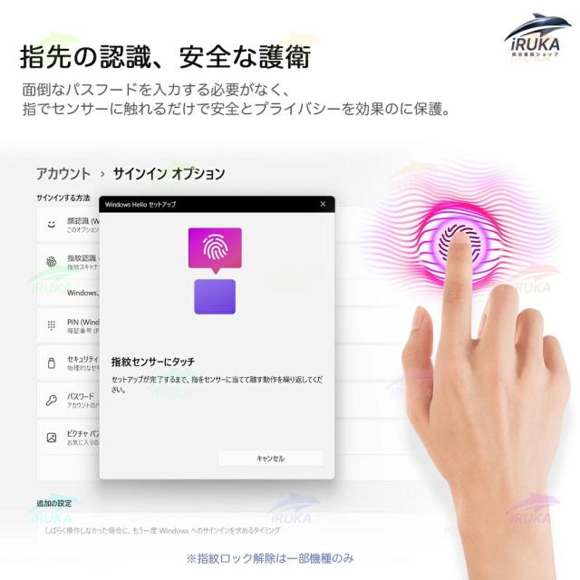 キーボード:ンキー付きフルサイズキーボードテ、指紋ロック解除