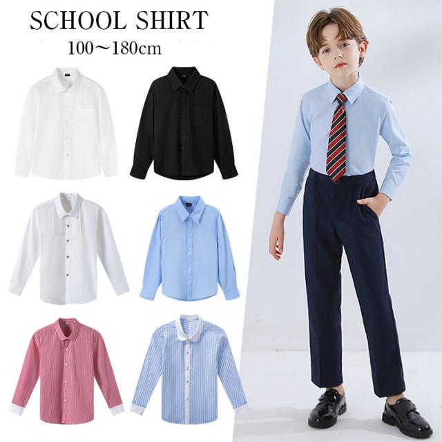 スクールシャツ 女子 男子 長袖 制服 学生制服 ブラウス キッズ 子供 小学生レディースファッション トップス シャツ ブラウス