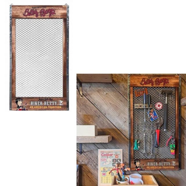 ベティ・ブープ DIY ディスプレイボード 金網 木製フレーム 壁掛け ガレージ 工具掛け 可愛い 吊り下げ アメリカン キャラクター インテリア アンティーク 雑貨 ウッド 壁飾り おしゃれ 店舗