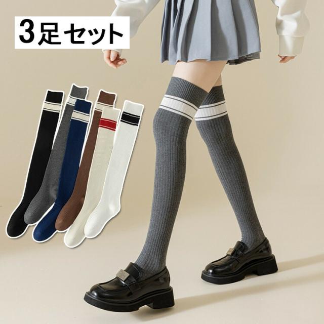 3足セット ニーハイソックス ソックス レディース 女子 女性 女の子 学生 スクール スクールソックス JK jk 制服 女子中学生 女子高校生 通学 普段着 学院風
